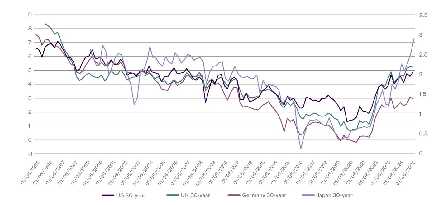 Figure 3: US, UK, Japan, Germany 30-year government bond yields