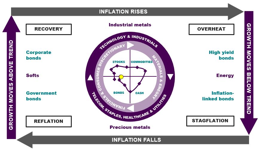 The Investment Clock is updated by the Multi Asset team on a regular basis. To find out more about the concept and premise behind the Investment Clock, visit our Multi Asset capability page.