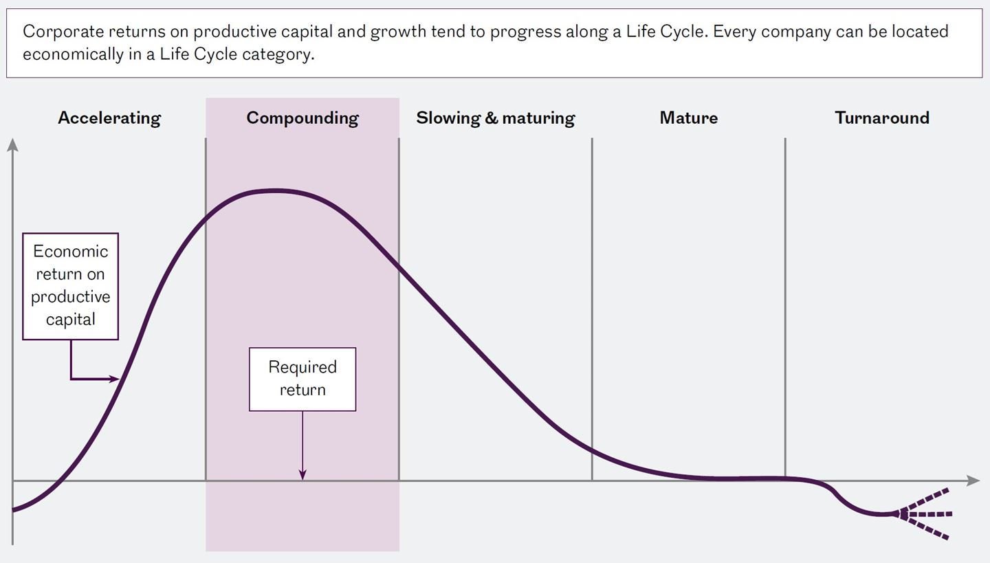 • Companies in the Compounding stage of the Life Cycle have moved beyond peak growth and have reached a stage where we are looking for consistent, visible returns