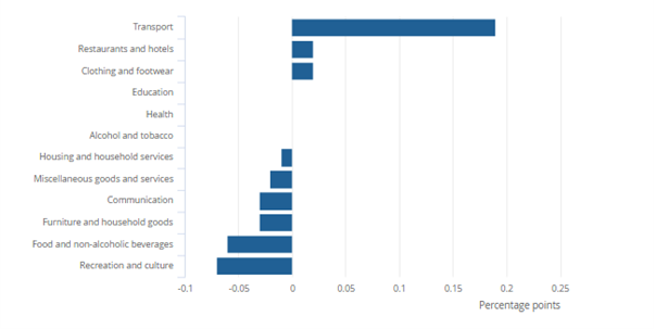 Contributions to change in the CPIH annual inflation rate, UK, between August and September 2025
