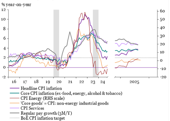 UK: Headline, Core, Core Goods & Services Inflation